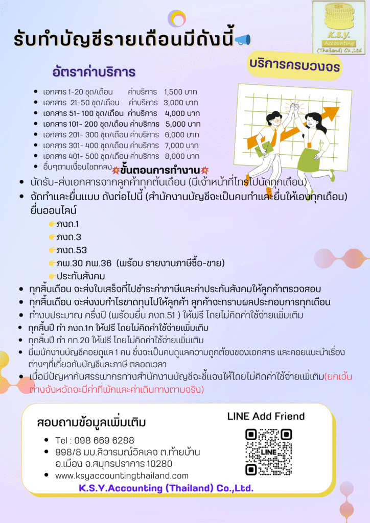 Services รับทำบัญชีรายเดือน 05/19/202505/19/2025 Saowani The details are as follows: Related Posts Services 3 ข้อต้องรู้เกี่ยวกับการจดทะเบียนธุรกิจ 06/04/202506/04/2025 Saowani Services โปรโมชั่น เดือนพฤษภาคม 05/27/202505/27/2025 Saowani